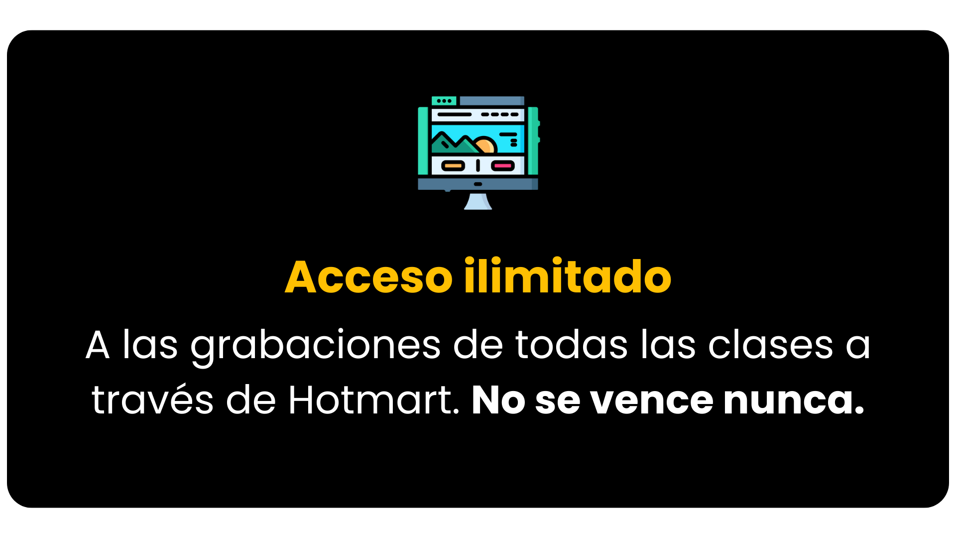 Si empiezas el curso y no cumple tus expectativas, te devolvemos el dinero. Tienes 30 días o el tiempo transcurrido entre las primeras 4 clases para solicitar tu garantía y reembolsarte tu inversión.